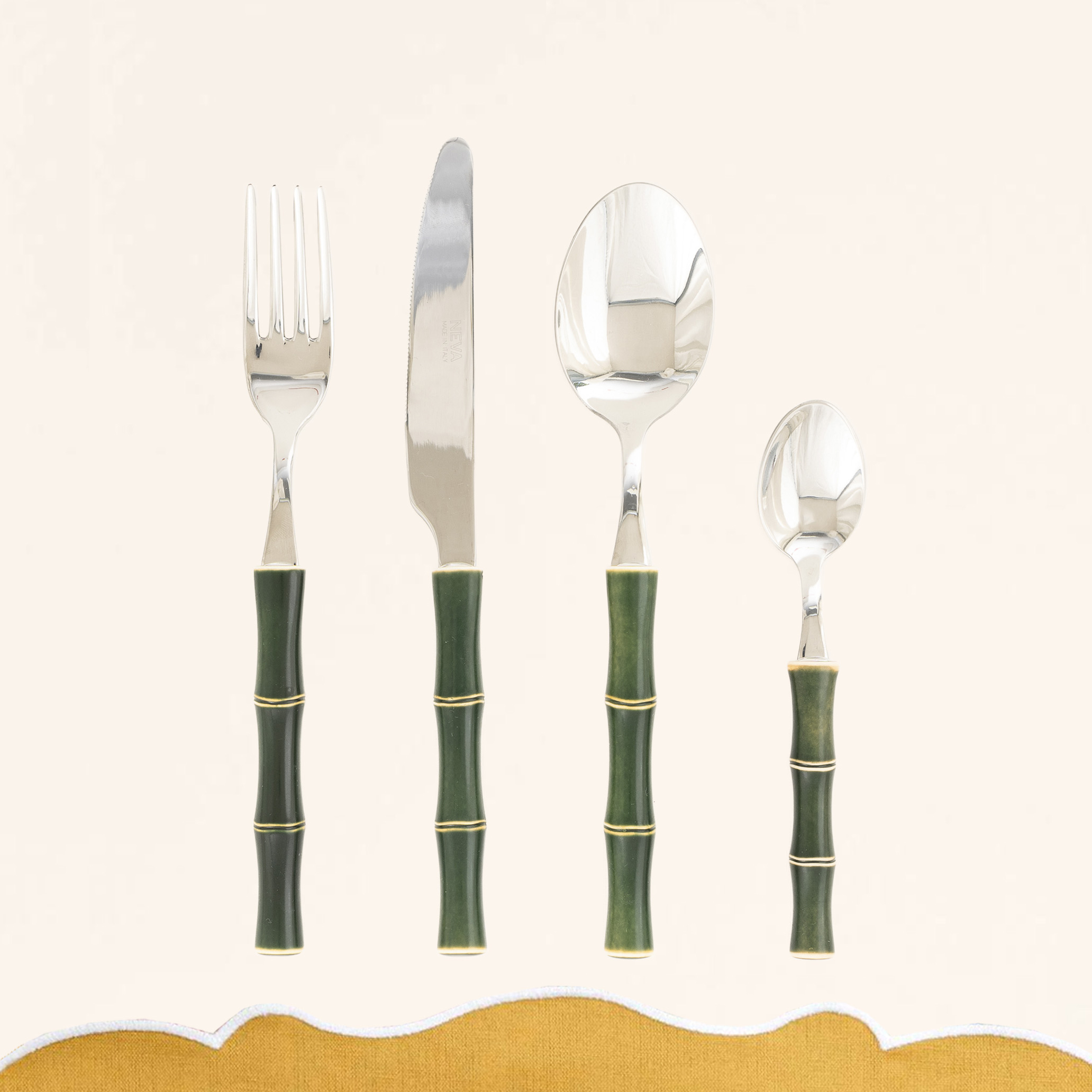 Cubertería Bambú Verde para 6 personas (Set de 24 piezas)