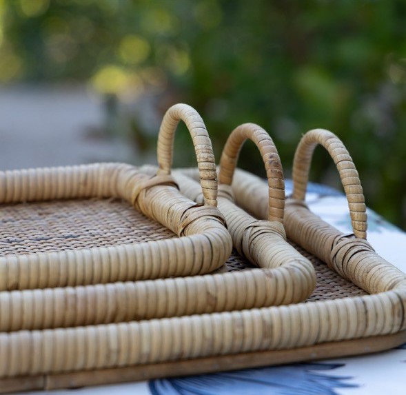 Estas bandejas de ratán hechas a mano son un guiño a la calidez natural y al arte de recibir con estilo. Su entramado delicado y sus asas envolventes las convierten en piezas tan funcionales como decorativas, perfectas para acompañarte en desayunos soleados, meriendas improvisadas o como base elegante para flores, velas o vajilla especial.