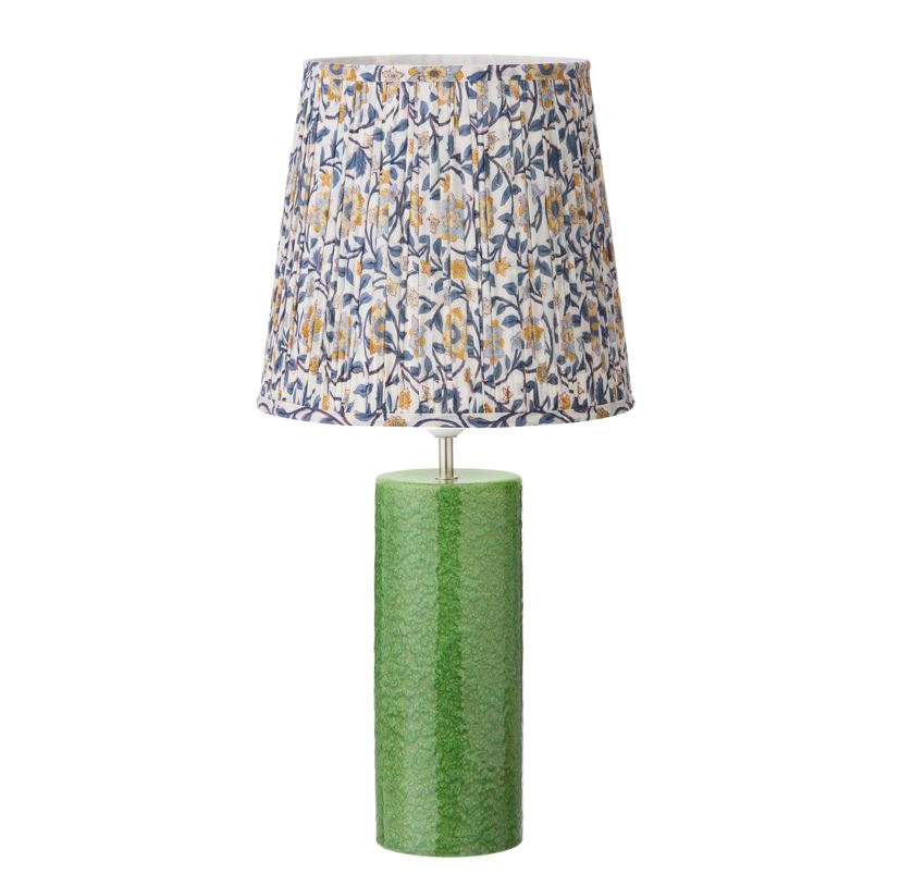 Color: Verde esmeralda Material: Gres Medidas: Alto 32 cm x Ø 13 cm Cuidados: Limpiar suavemente con un paño seco. Enchufe: Europeo de 2 clavijas. Bombilla E27.
