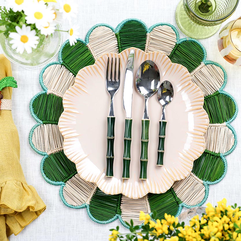 Cubertería Bambú Verde para 6 personas (Set de 24 piezas)