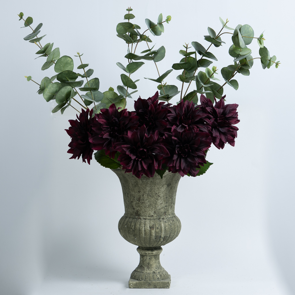 Descubre la intensidad y la belleza de nuestra Dalia Burdeos, una flor elaborada en 43 cm de altura que destaca por su profundo color burdeos y su impactante presencia. Esta dalia, meticulosamente fabricada en tela de la más alta calidad, captura la esencia de la elegancia otoñal, con pétalos densamente agrupados que forman una flor completa y sofisticada.