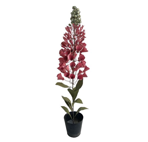 Elegante y silvestre como un paseo por el campo, esta dedalera de metal ha sido modelada a mano con delicadeza artesanal. Cada campanilla, cada hoja, cada curva ha sido cuidadosamente trabajada y pintada a mano para capturar la belleza sutil de esta flor tan especial.