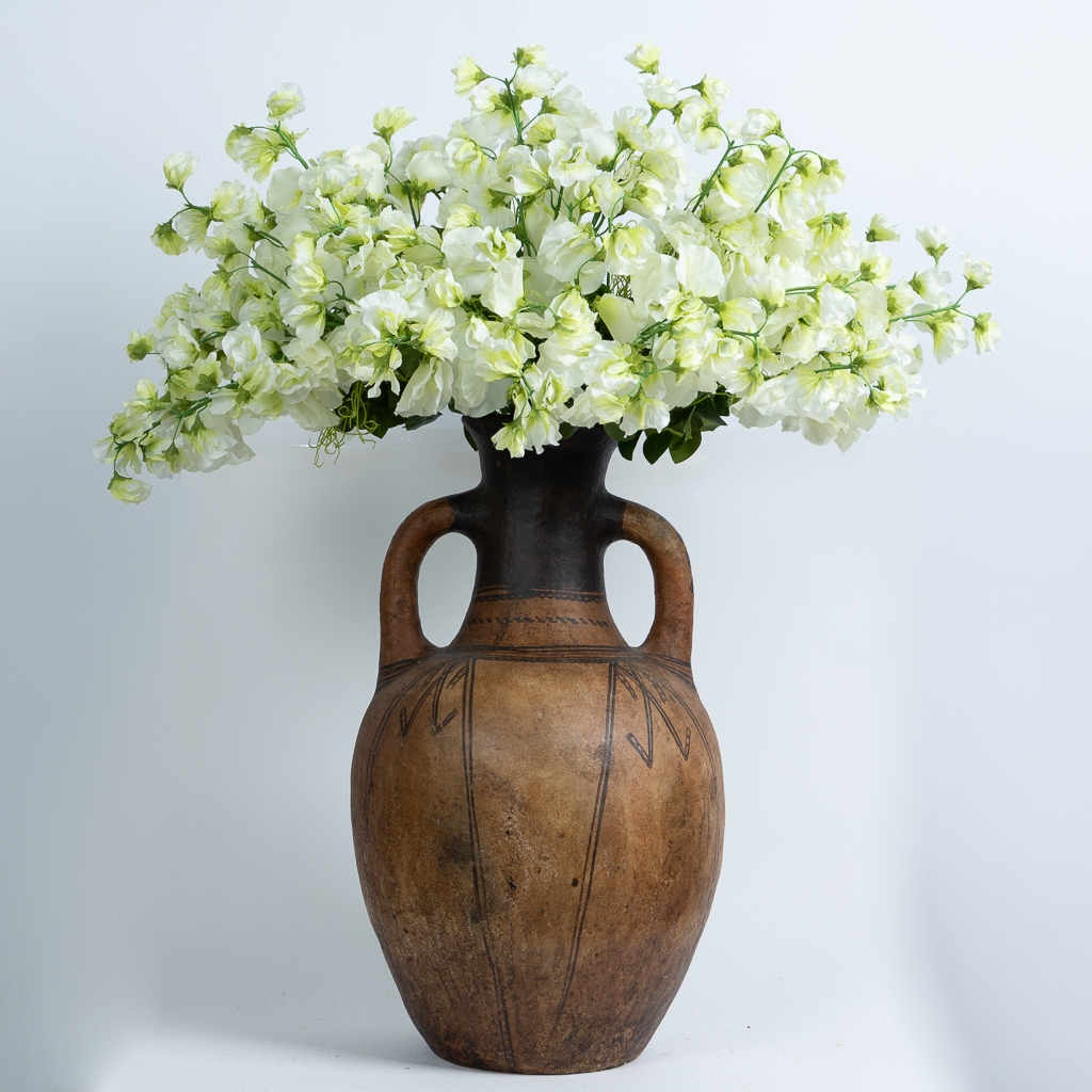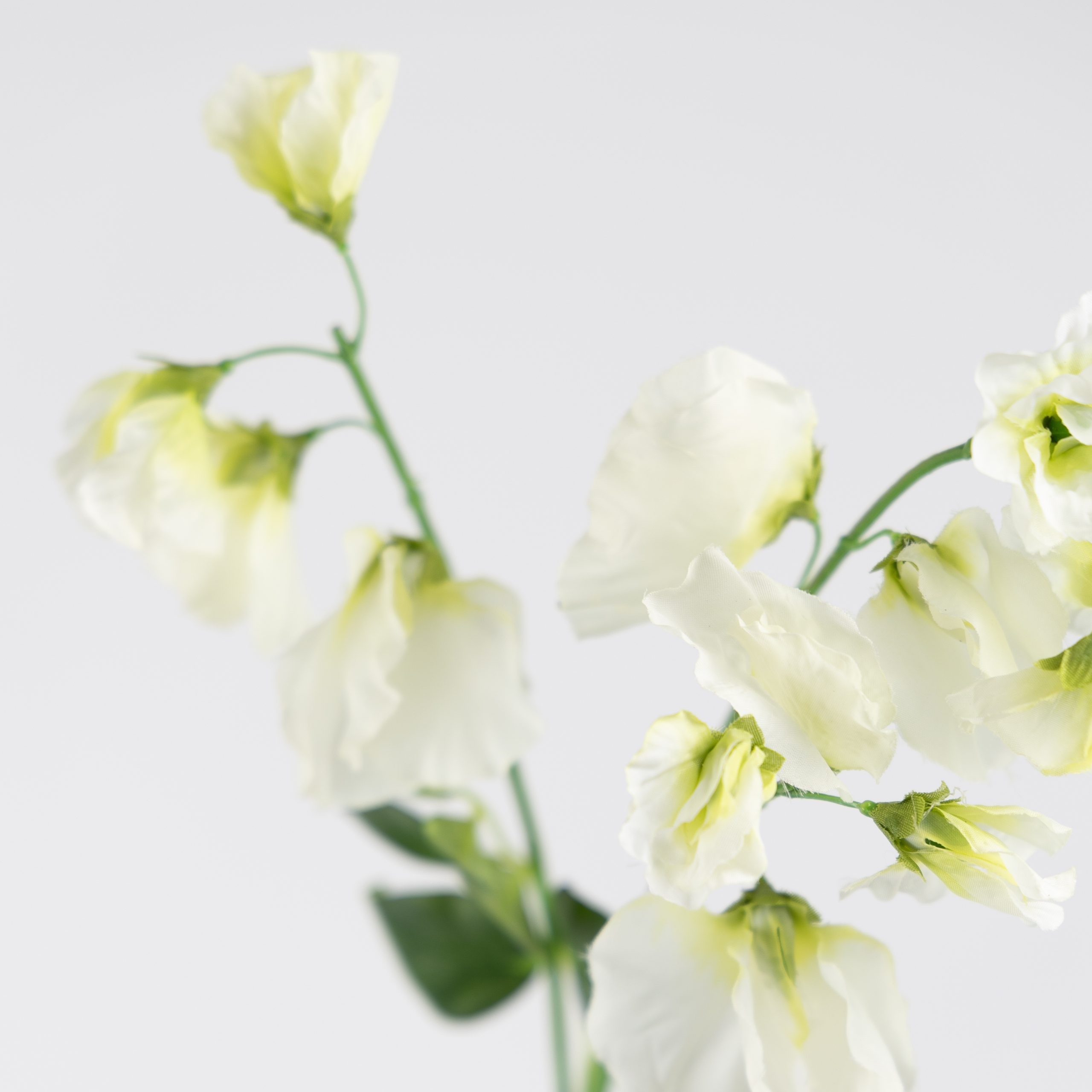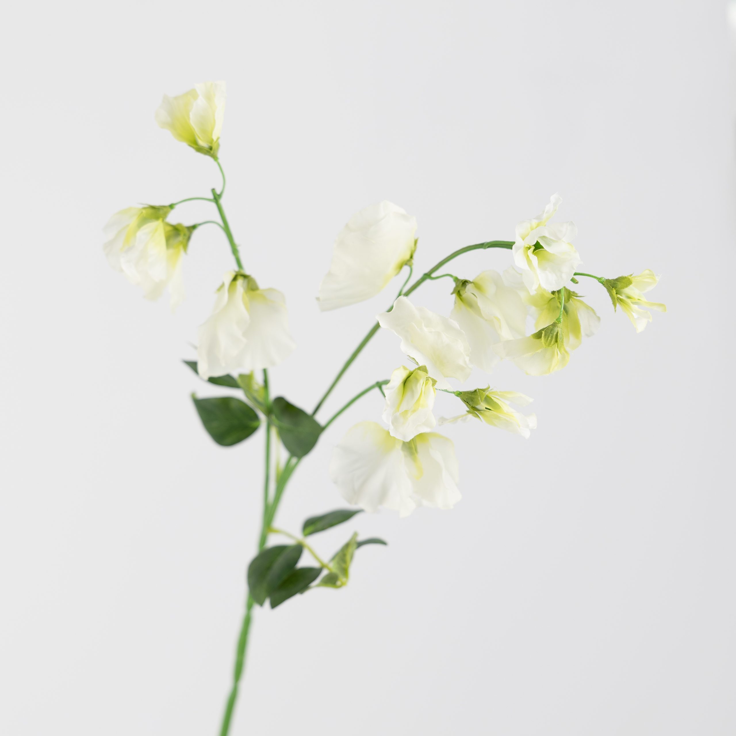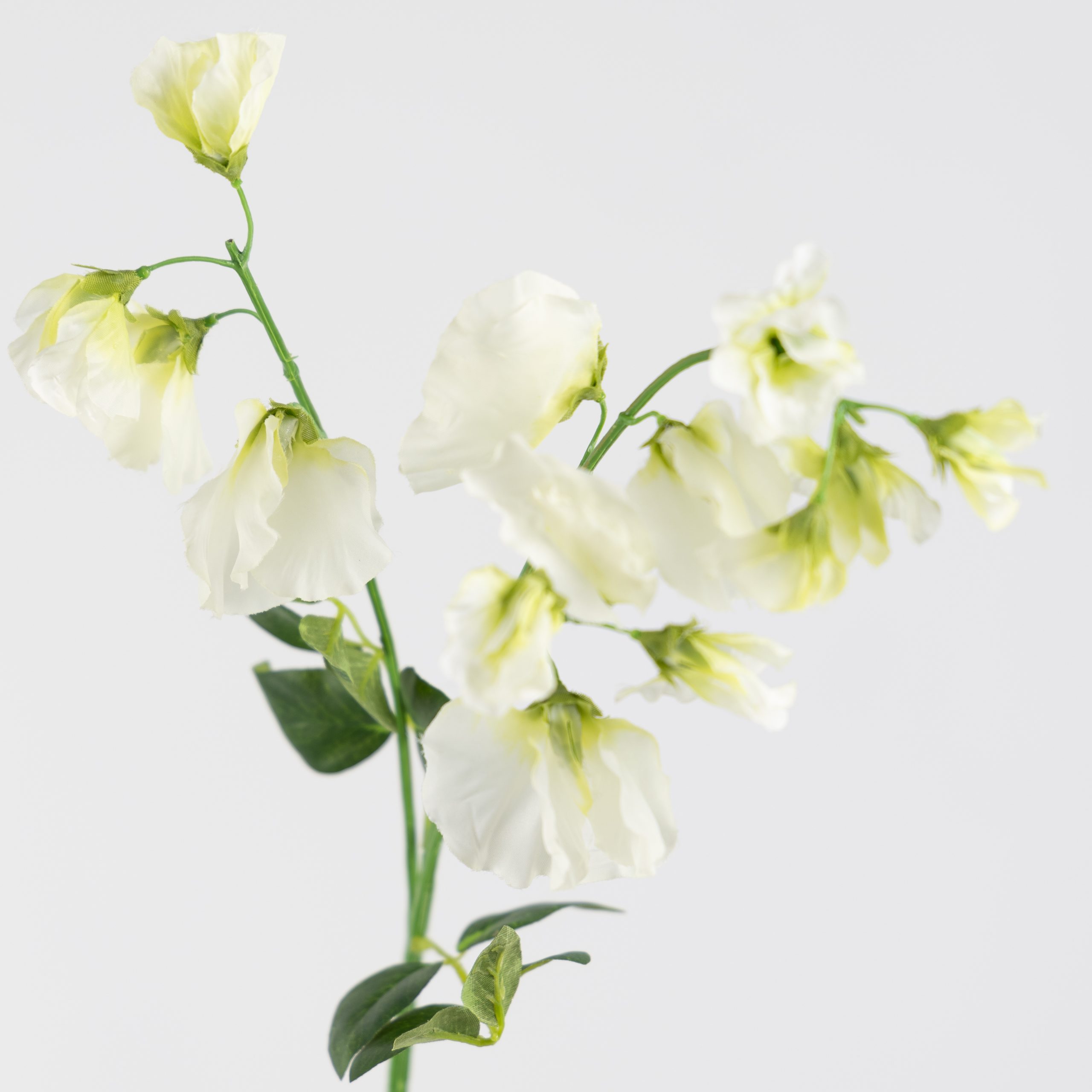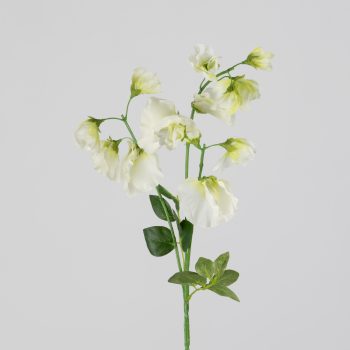 Incorpora la delicadeza de la Flor de la Judía Blanca en tus arreglos florales. Elaborada con una altura de 68 cm, esta flor confeccionada con materiales de primera calidad, destaca por su sutil combinación de pétalos blancos suaves con toques verdes que aportan frescura y naturalidad. Las flores tienen una forma acampanada, ligeramente inclinadas, que caen de manera elegante, dando la impresión de un movimiento suave y orgánico. Los tallos verdes y flexibles están adornados con pequeñas hojas que complementan perfectamente las flores, añadiendo un toque de autenticidad y equilibrio visual.
