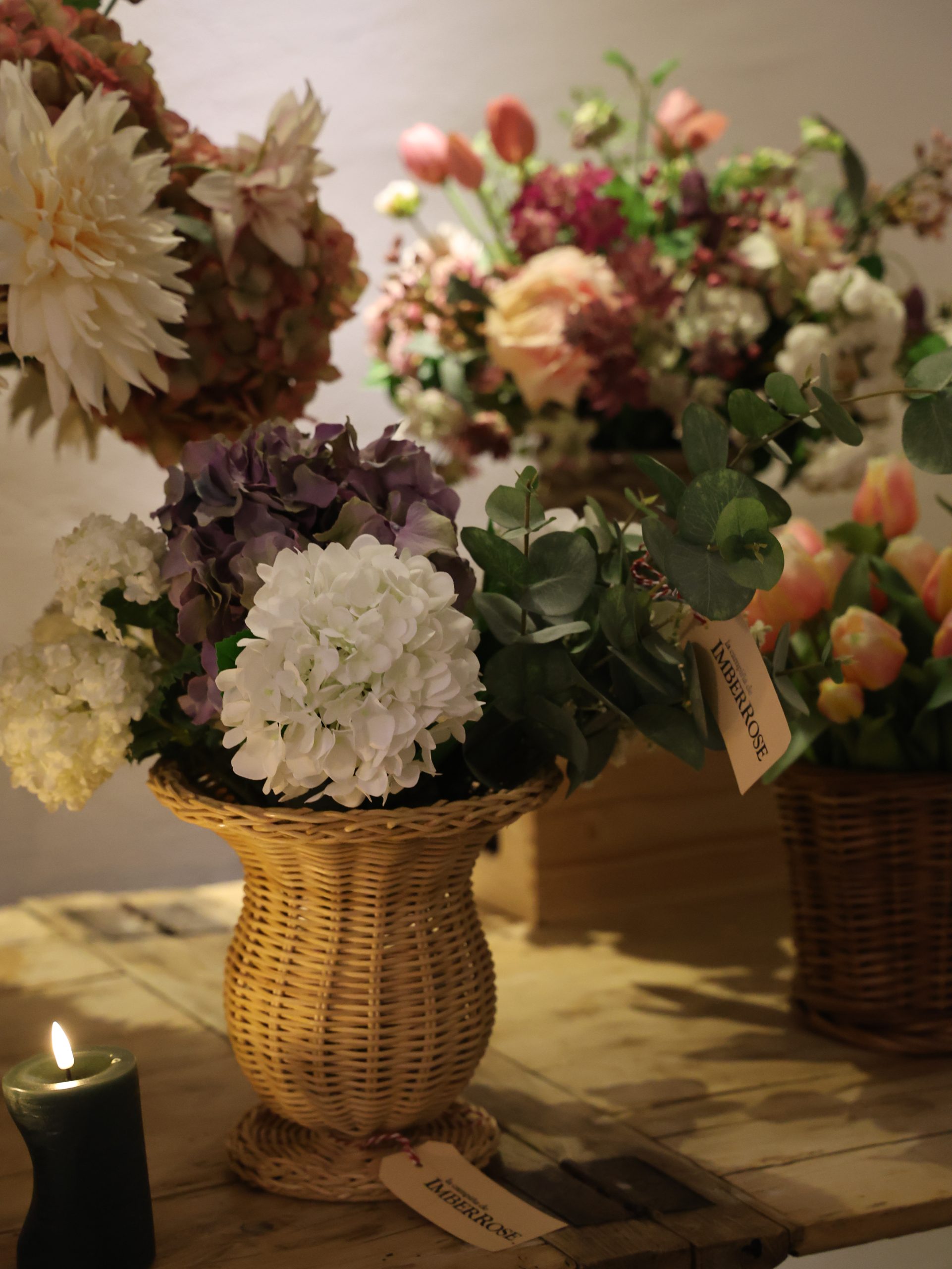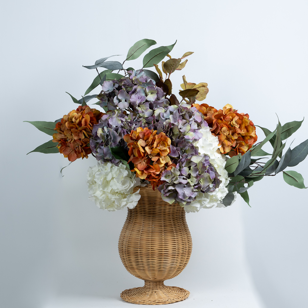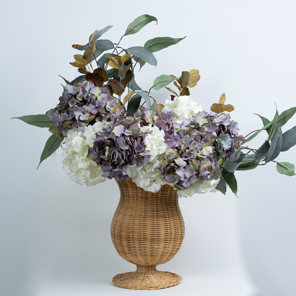 Sugerencia de combinación: Combina varias de estas hortensias con follaje verde y flores en tonos neutros para un efecto elegante y natural. También puedes mezclarlas con flores en tonos más oscuros para un contraste que resalte la belleza de esta flor.