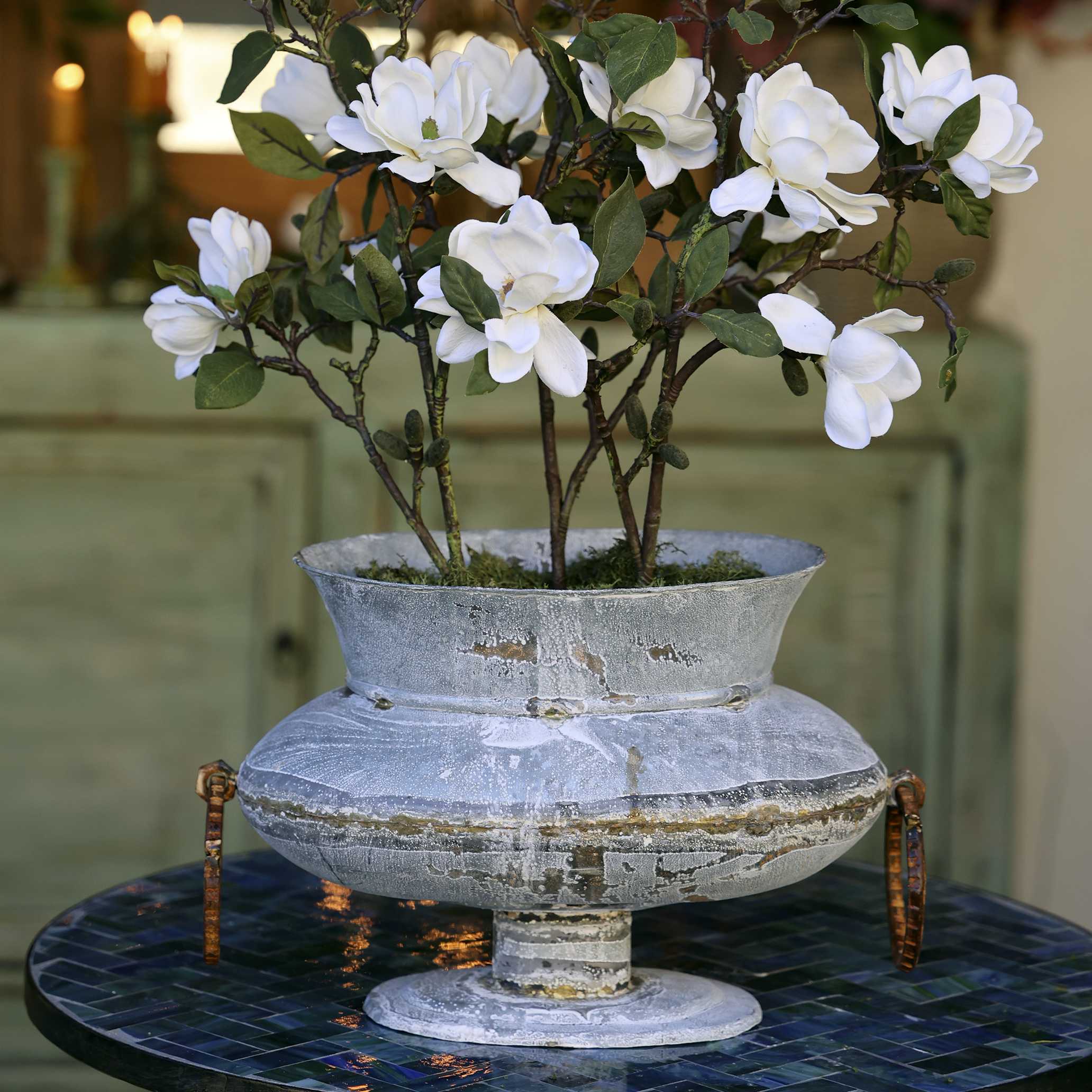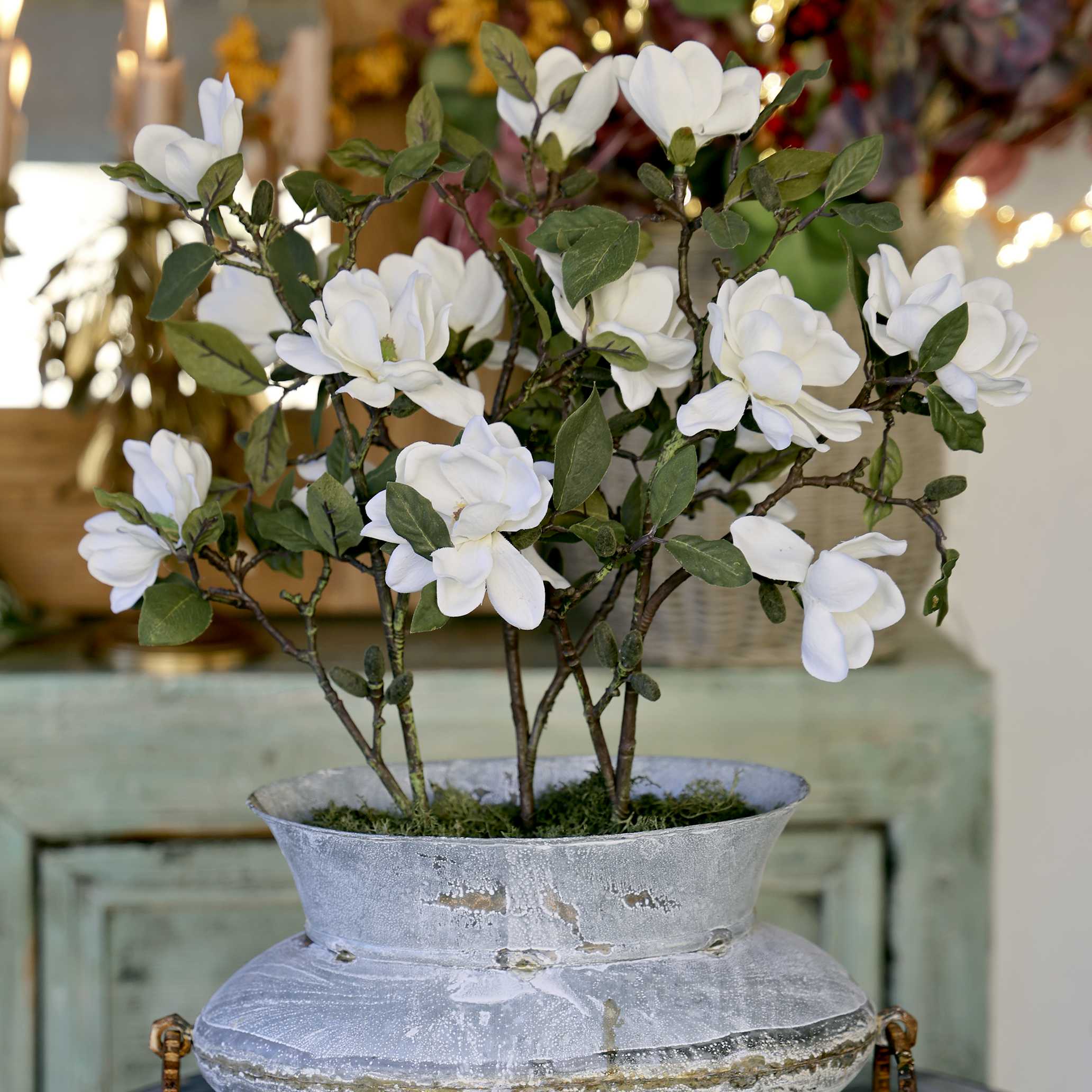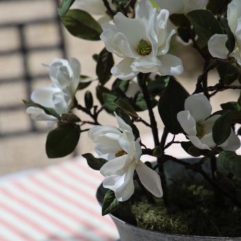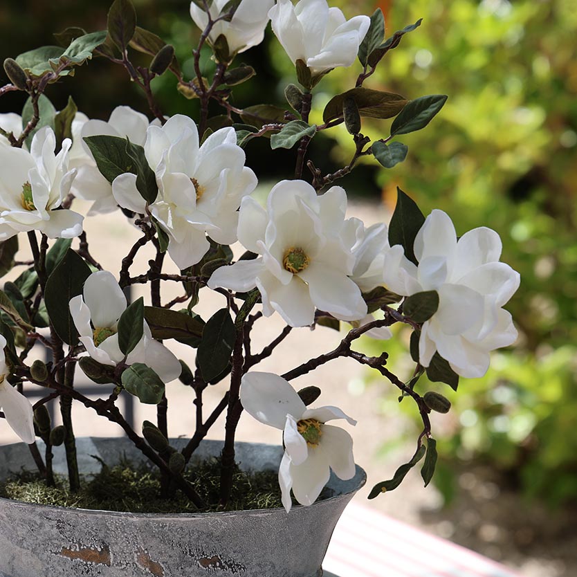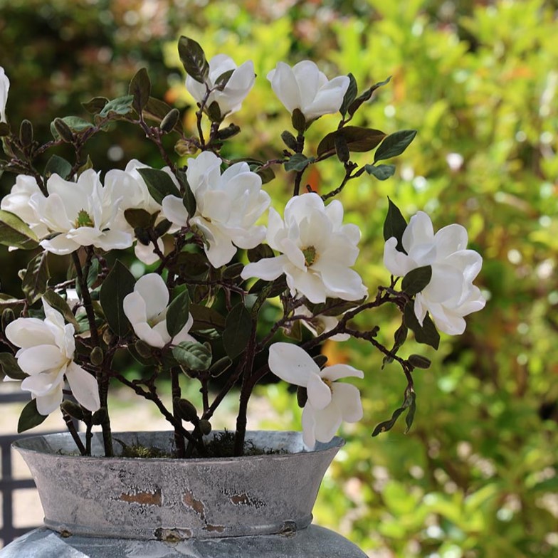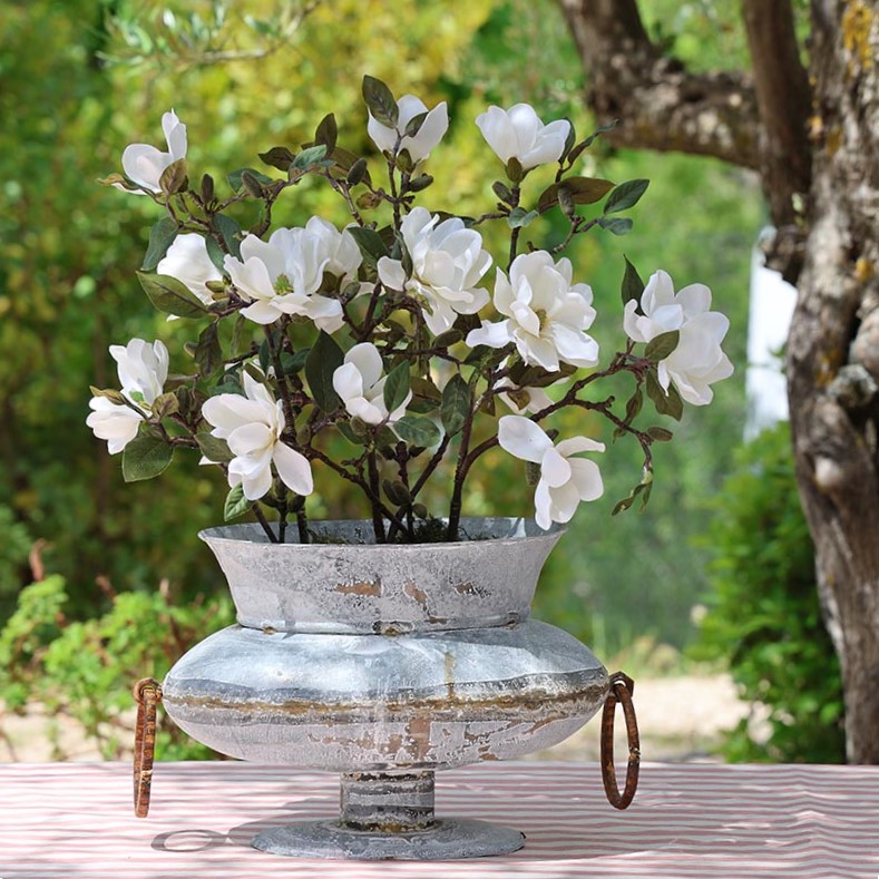 Te presentamos este precioso Jardín de magnolio sobre una base de musgo .Cada flor, elaborada con materiales exclusivos, te hará sentir que estás tocando flores recién cortadas. El jarrón, de metal con doble asa , convierte esté jardín en la pieza perfecta para embellecer cualquier espacio.