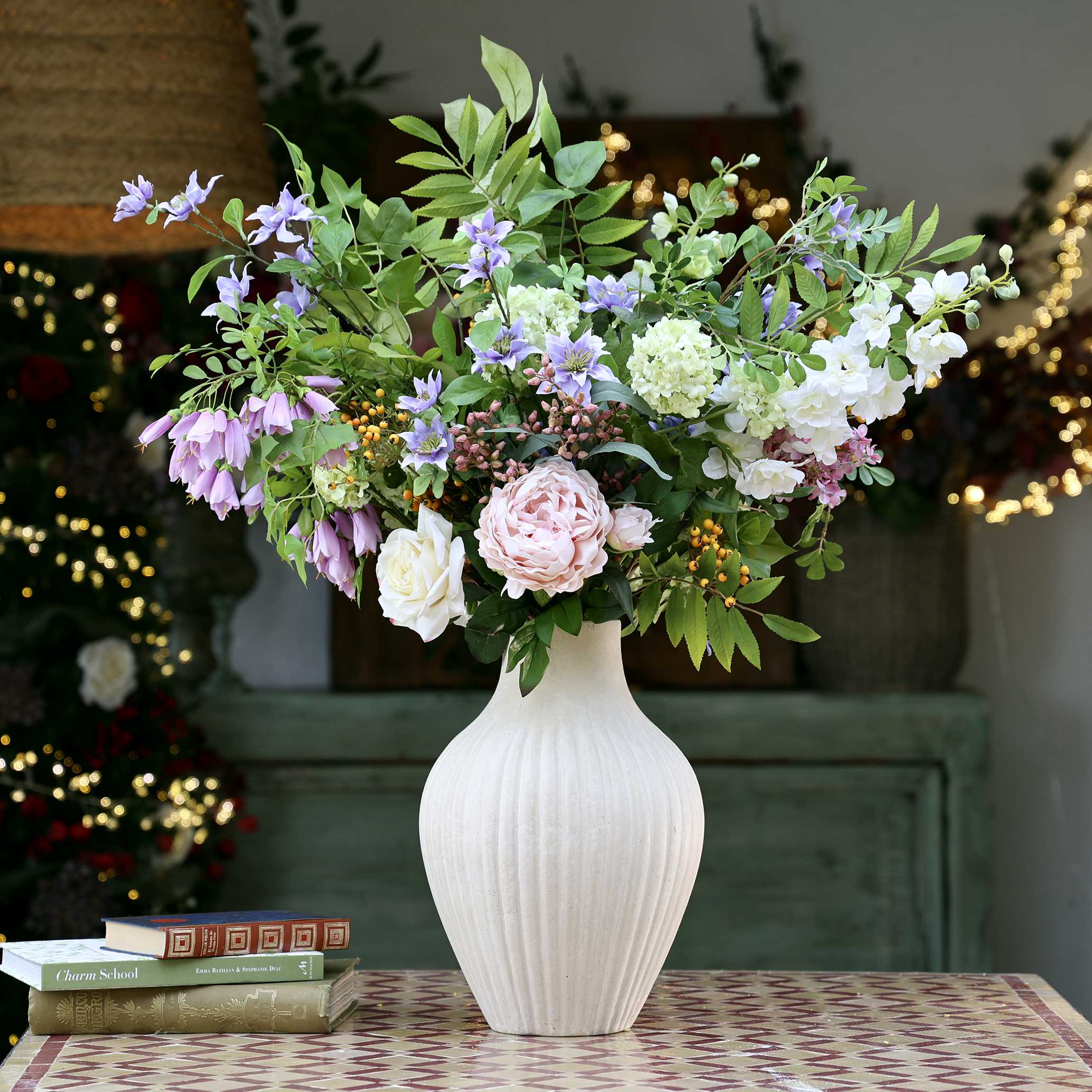 Ideal tanto para flores artificiales como secas, el Jarrón Wesley es una opción versátil que realza cualquier arreglo floral, convirtiéndose en un elemento decorativo de gran impacto en cualquier estancia.