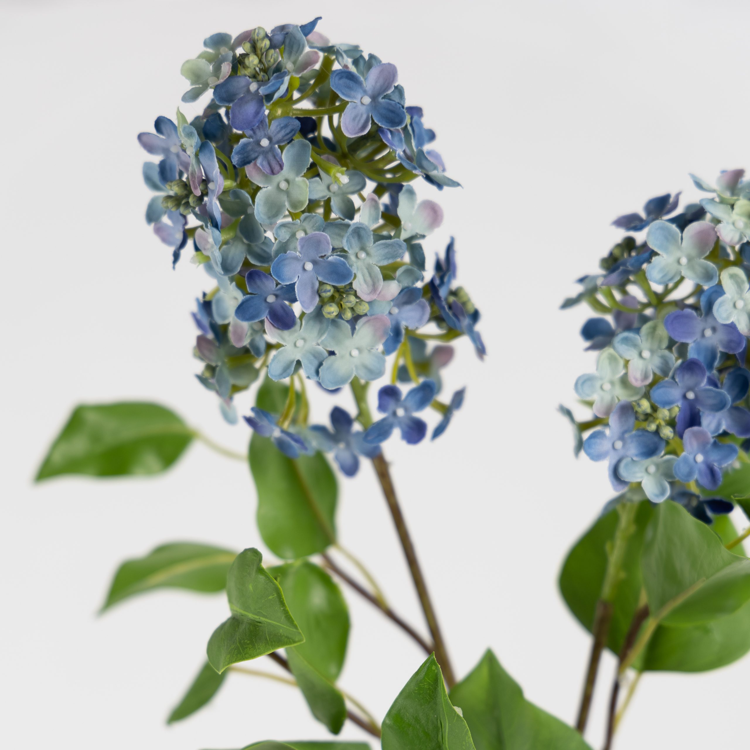 Descubre la belleza serena de nuestra Lila Azul, una flor confeccionada con materiales de primera calidad que destaca por su tonalidad única y su diseño detallado. Elaborada con una altura de 83 cm, esta rama presenta dos conjuntos de flores, cada uno diseñado con pequeñas flores de color azul que varían en intensidad, creando un efecto degradado que va desde un azul profundo hasta un azul más suave y claro.