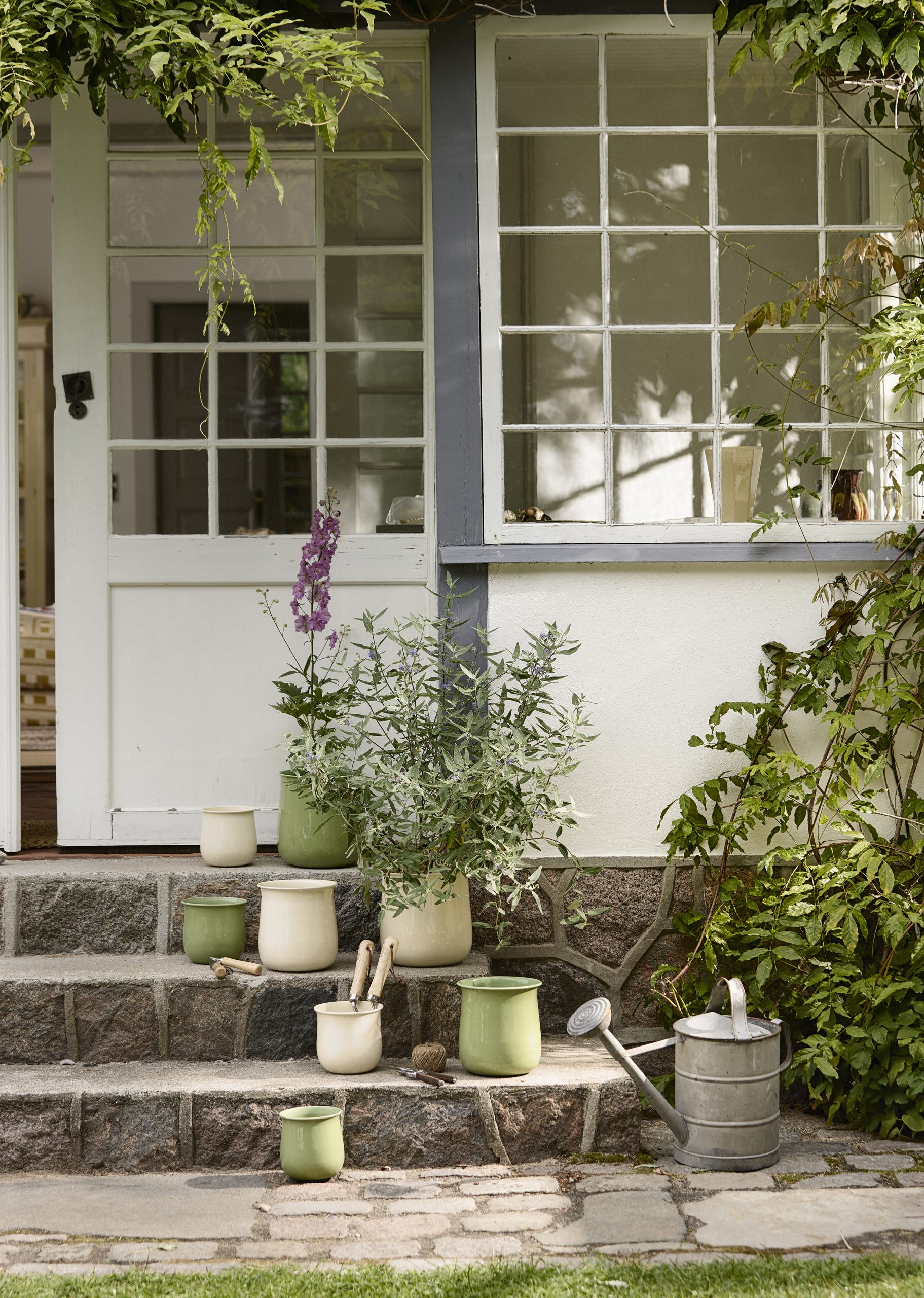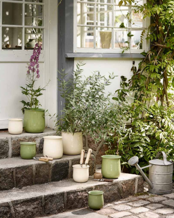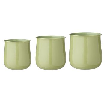 Precioso macetero metálico con revestimiento de esmalte color verde disponible en 3 tamaños. Elige el que más te gusta o combina los tres para un conjunto ideal.