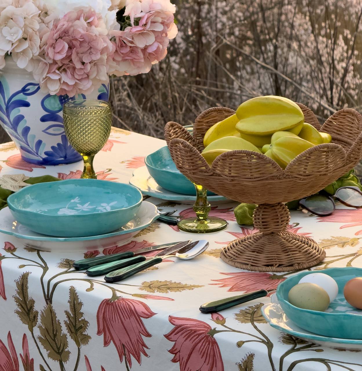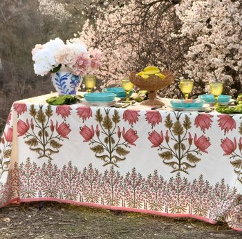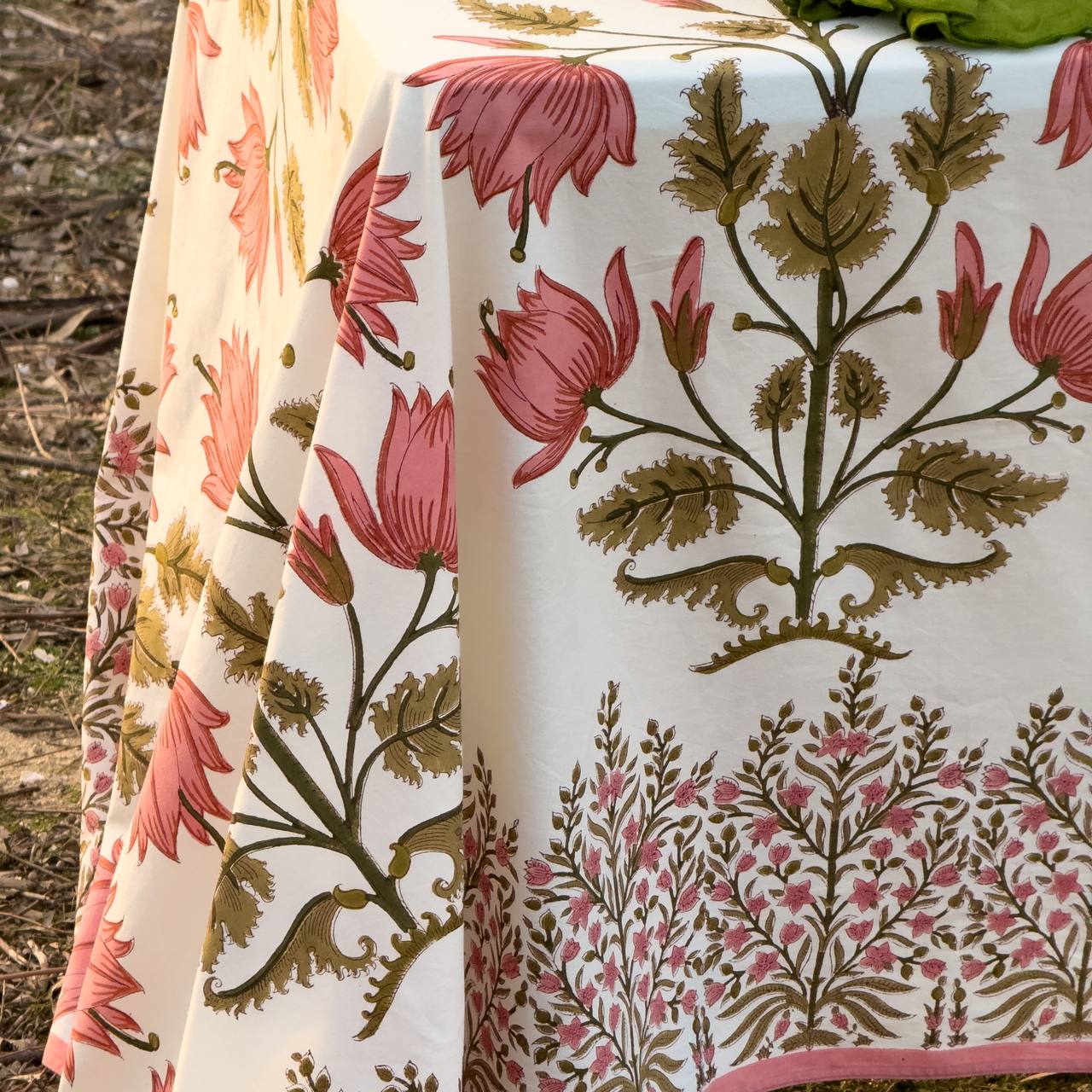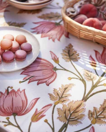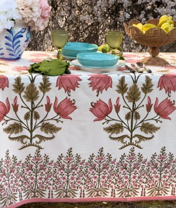 Te presentamos nuestro precioso Mantel Campanula Rosa. Este exclusivo mantel está hecho a mano utilizando un tradicional proceso de impresión en bloques, que conlleva un proceso largo y complejo, dando lugar a un elegante estampado de campánulas en tonos rosas. Fabricado en 100% algodón, es la opción perfecta para ser el foco de atención en todas tus mesas.