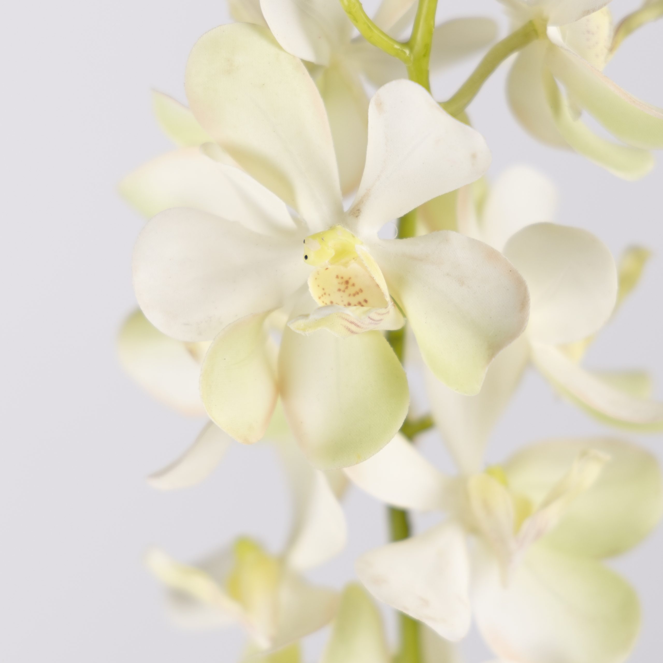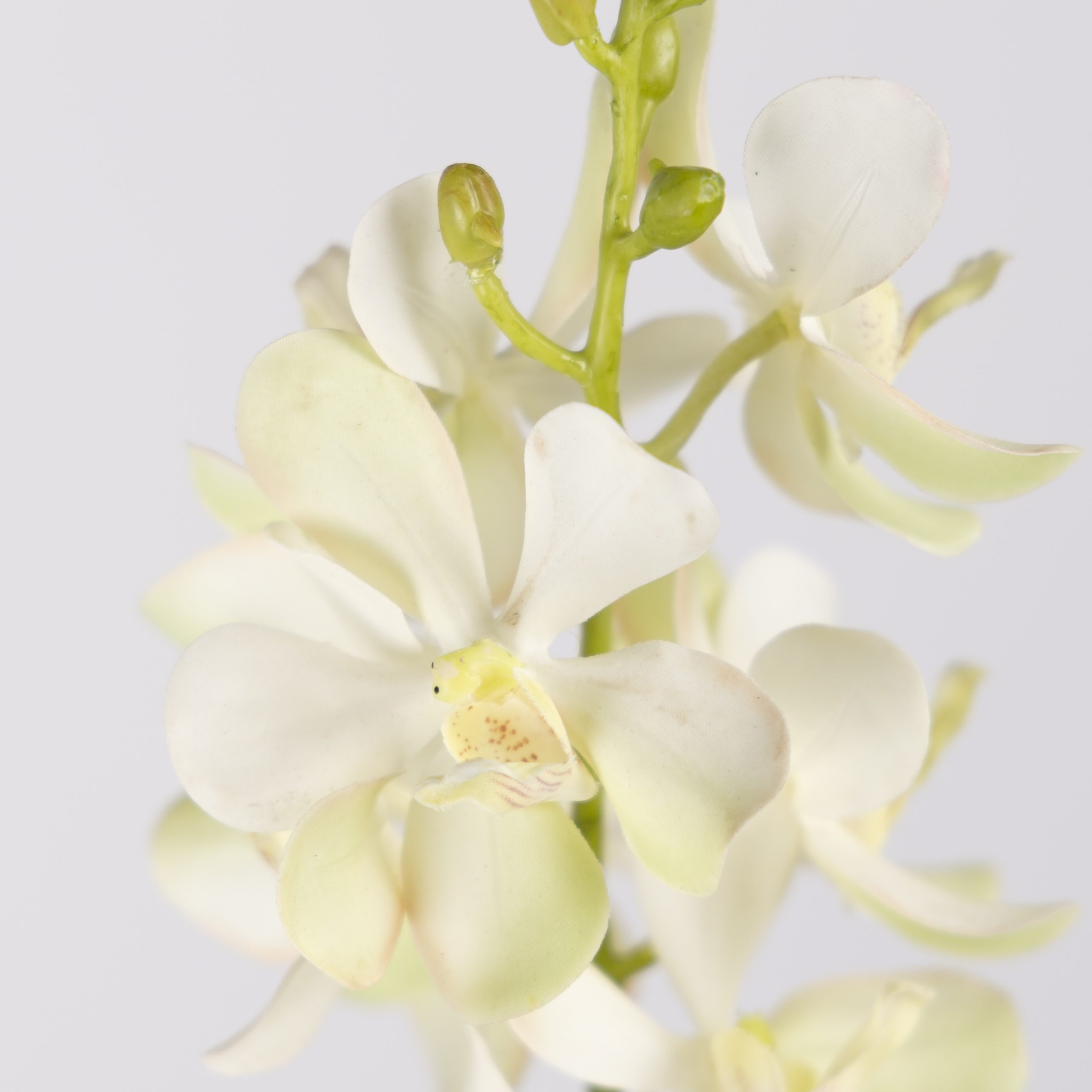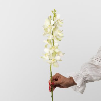 Sugerencias de decoración: Esta orquídea es perfecta para crear tu propio jardín de orquídeas. Pincha varias de estas flores en espuma floral y adórnalas con musgo para lograr un aspecto absolutamente realista y natural, ideal para cualquier rincón elegante de tu hogar. También puedes combinar varias de estas orquídeas en un jarrón para crear un arreglo floral impresionante y elegante.