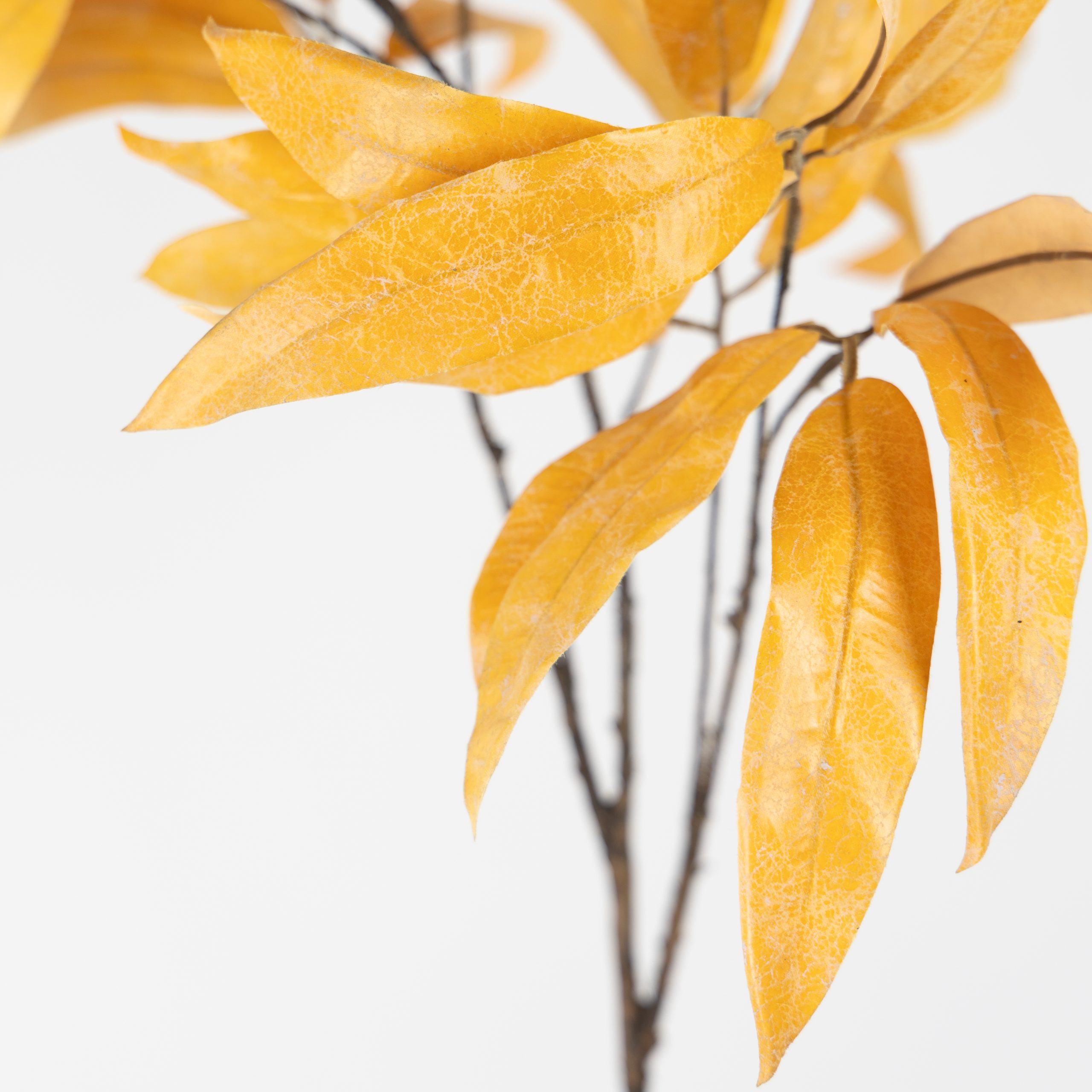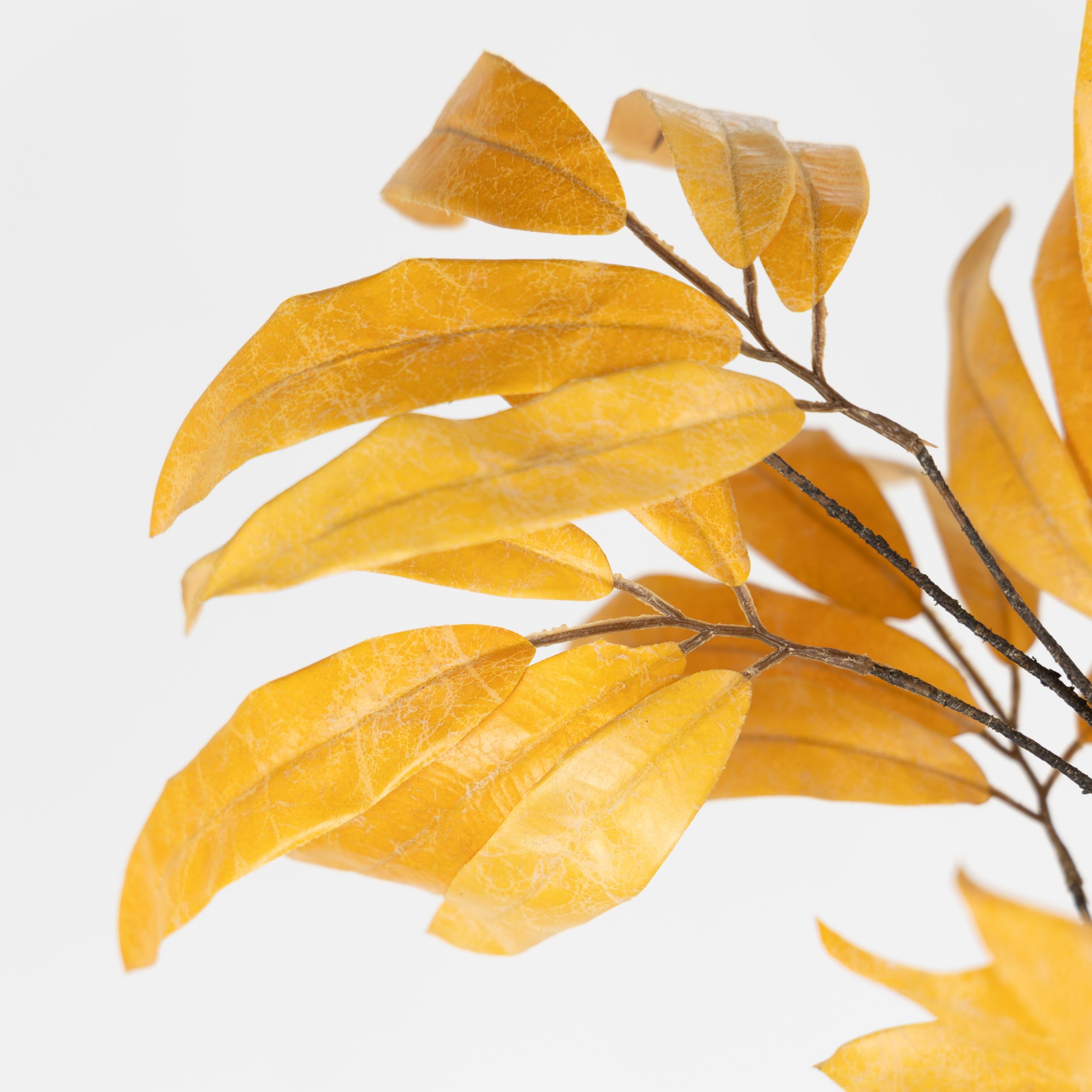 Este Eucalyptus Amarillo, elaborada con 88 cm de altura, es la opción perfecta para agregar un toque otoñal a cualquier arreglo floral. Las hojas, confeccionadas con un vibrante color amarillo tostado, capturan la esencia del otoño y evocan la sensación de estar rodeado de árboles en pleno cambio estacional.