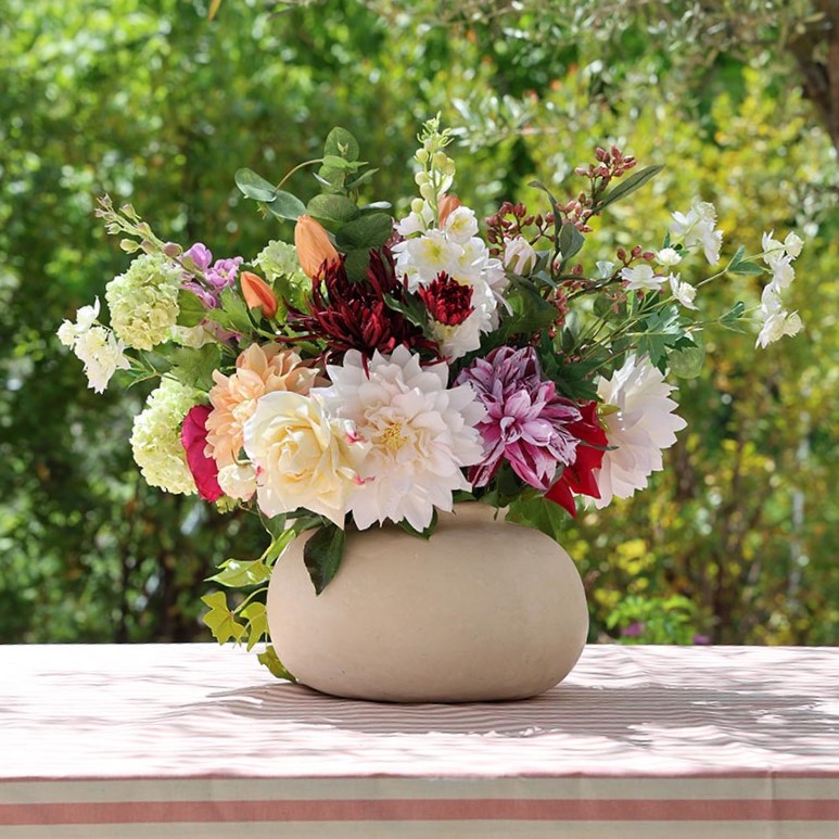 Tu ramo se envía cuidadosamente colocado en una caja diseñada específicamente para mantener el jarrón y las flores en perfectas condiciones durante el transporte. De esta manera, cuando abras tu paquete, te encontrarás con tu precioso ramo con flores artificiales de primera calidad en su jarrón. Tan solo tendrás que colocar tu arreglo floral en el lugar que más te guste y disfrutarlo.