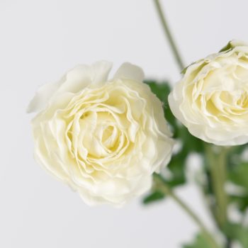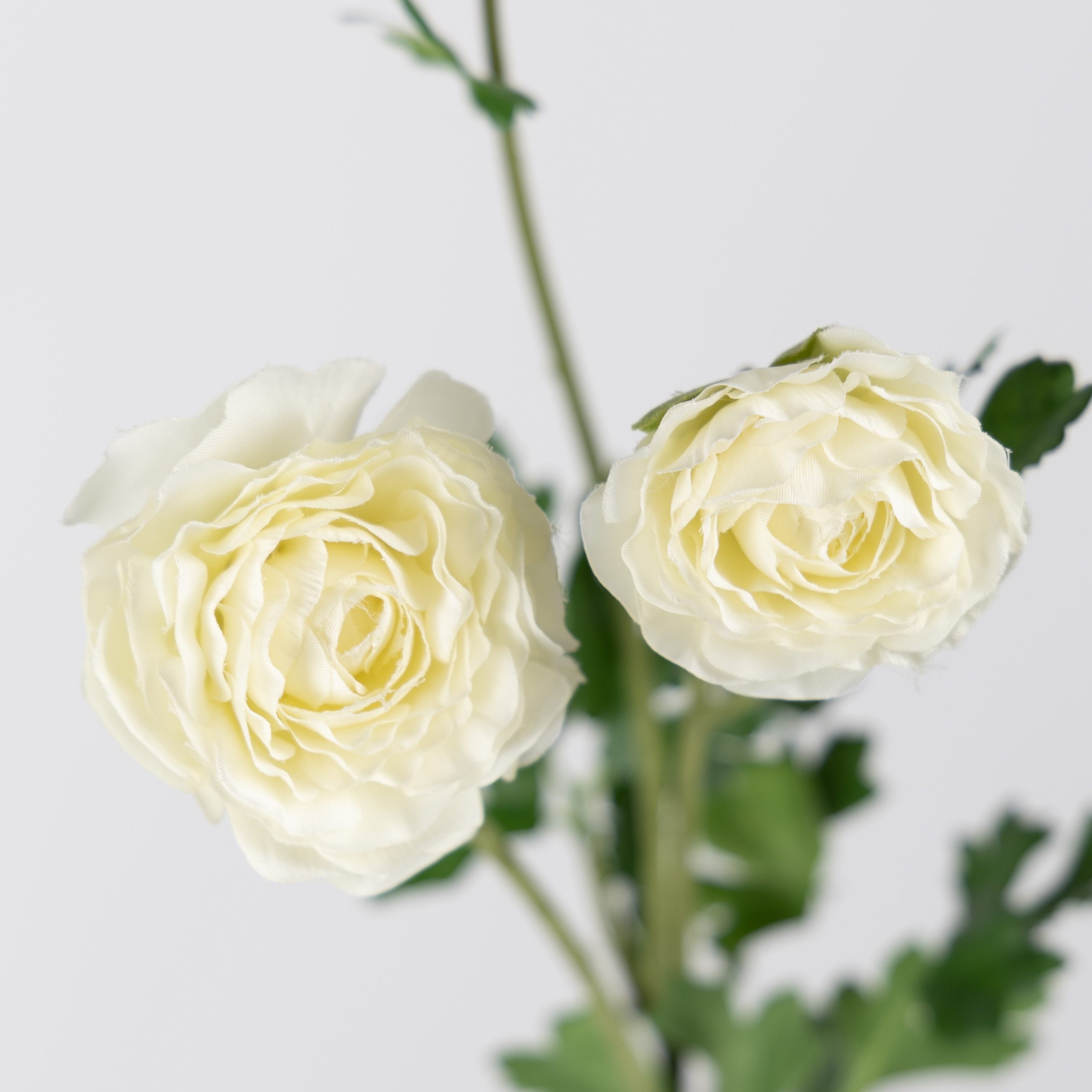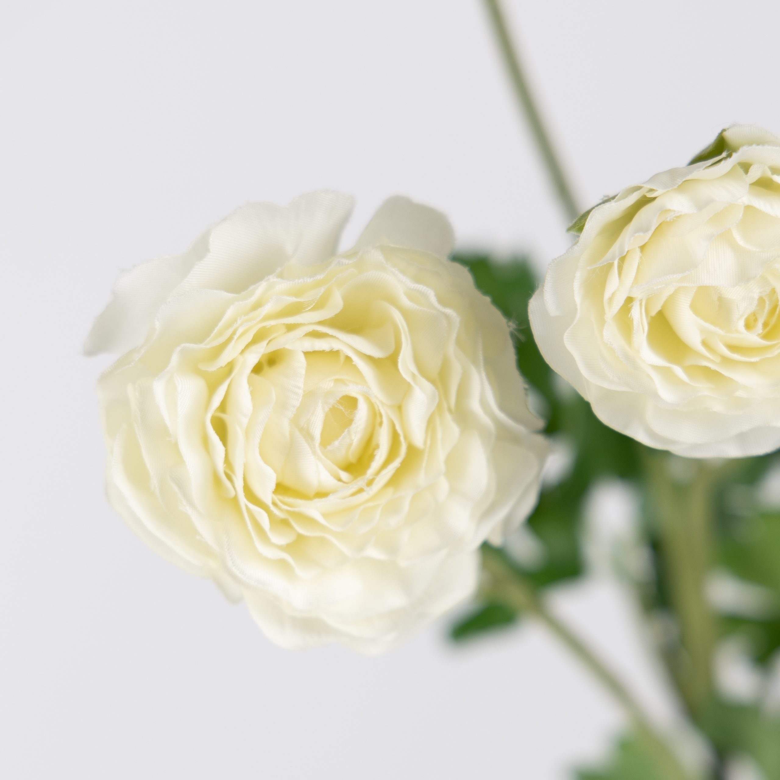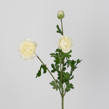 Descubre la delicadeza de nuestra rama de Ranúnculo Crema, una pieza que destaca por sus dos flores completamente abiertas y un capullo en desarrollo, acompañados de suaves hojas verdes. Con una altura de 64 cm, esta rama es perfecta para crear ramos elegantes y luminosos. Su color crema lo convierte en un elemento versátil que se puede combinar con otras flores y follajes para lograr composiciones florales preciosas.