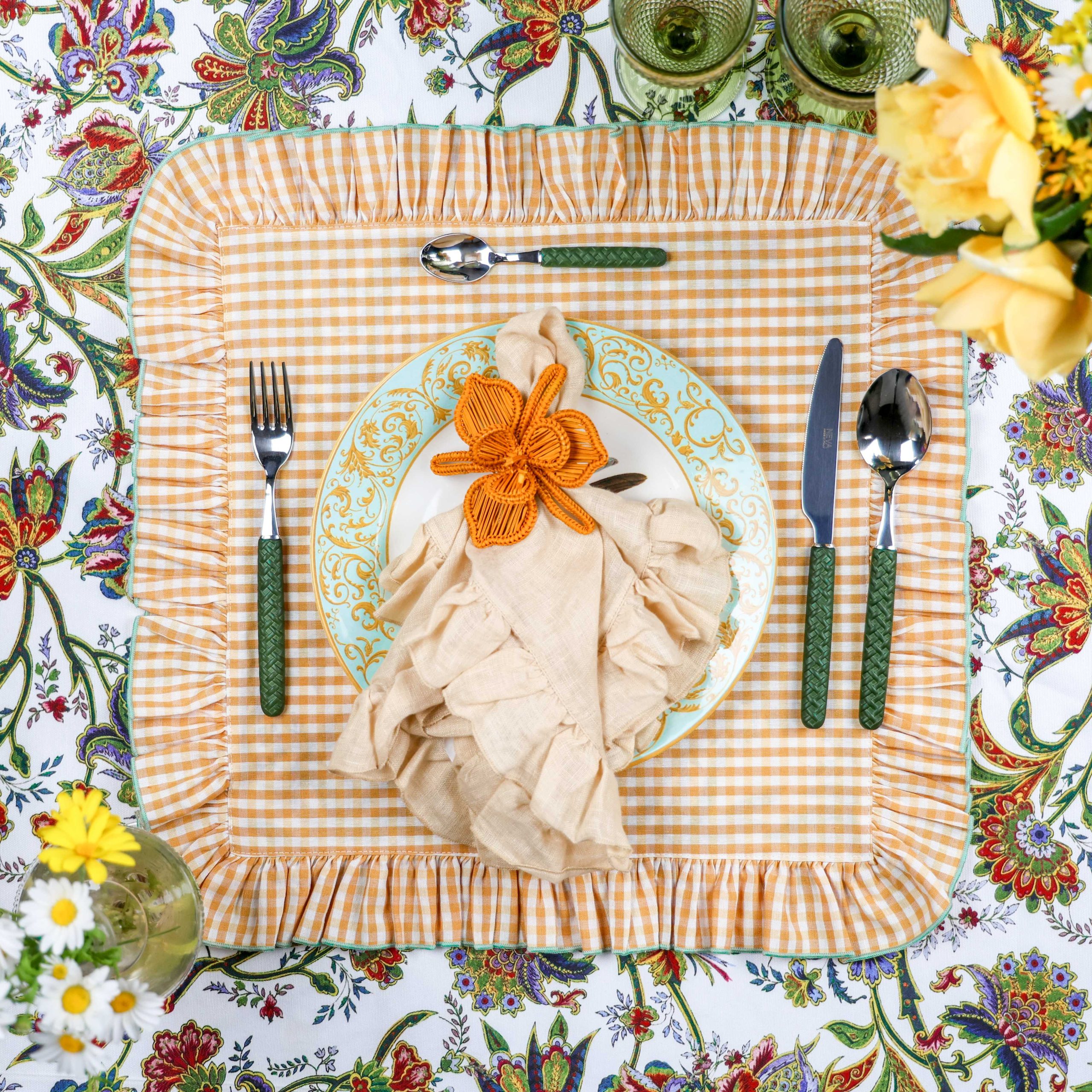 Nuestra colección Riviere presenta estas servilletas de lino color beige con risueños volantes bordados a mano. Este trabajo artesanal será una pieza central en tus mesas. Las servilletas Riviere están disponibles en diez colores que te permitirán embellecer las mesas con infinitas opciones.