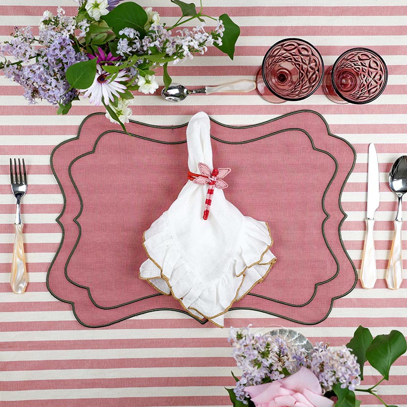 Nuestra colección Blossom de fibras naturales presenta este servilletero con forma de libélula en color rojo y rosa tejido con el más mínimo detalle a mano con palma de iraca por artesanas utilizando una técnica tradicional.