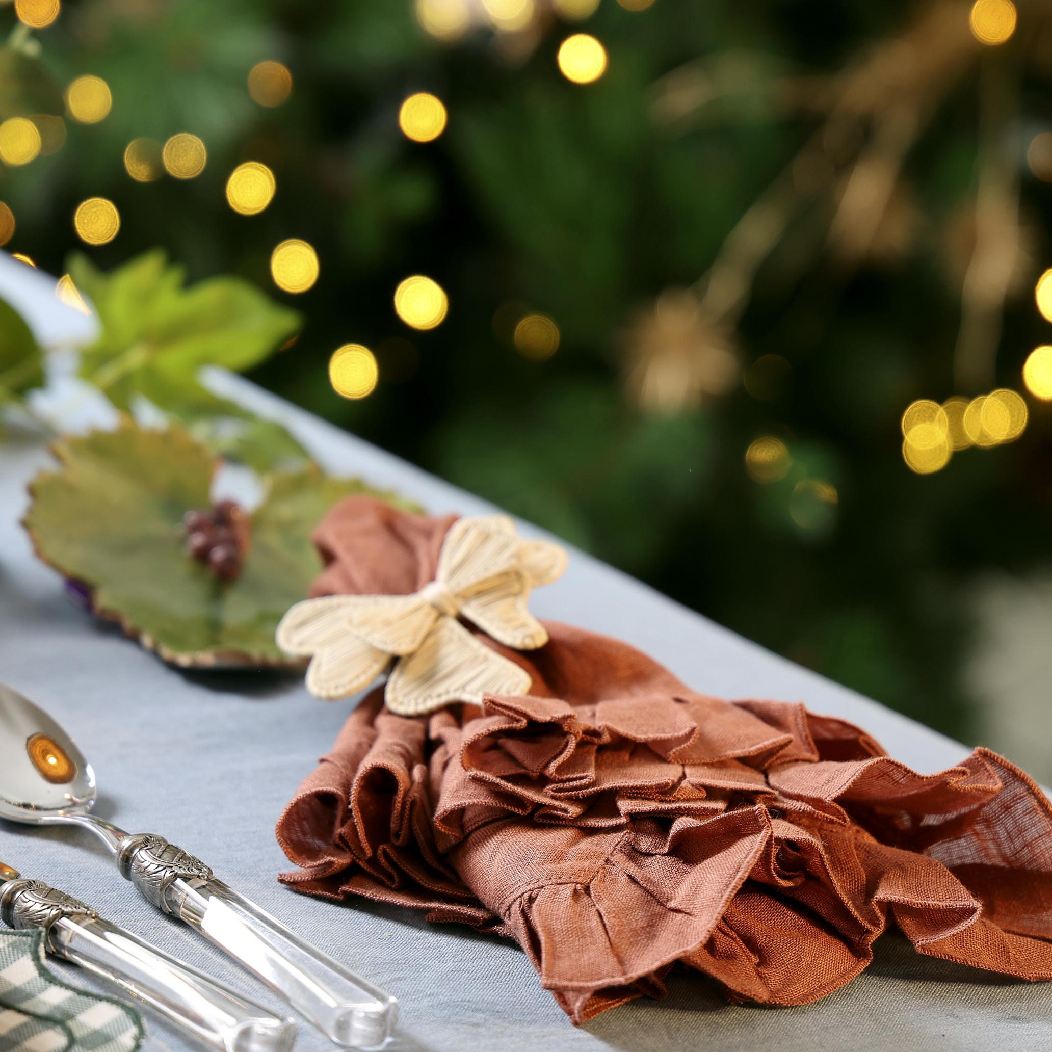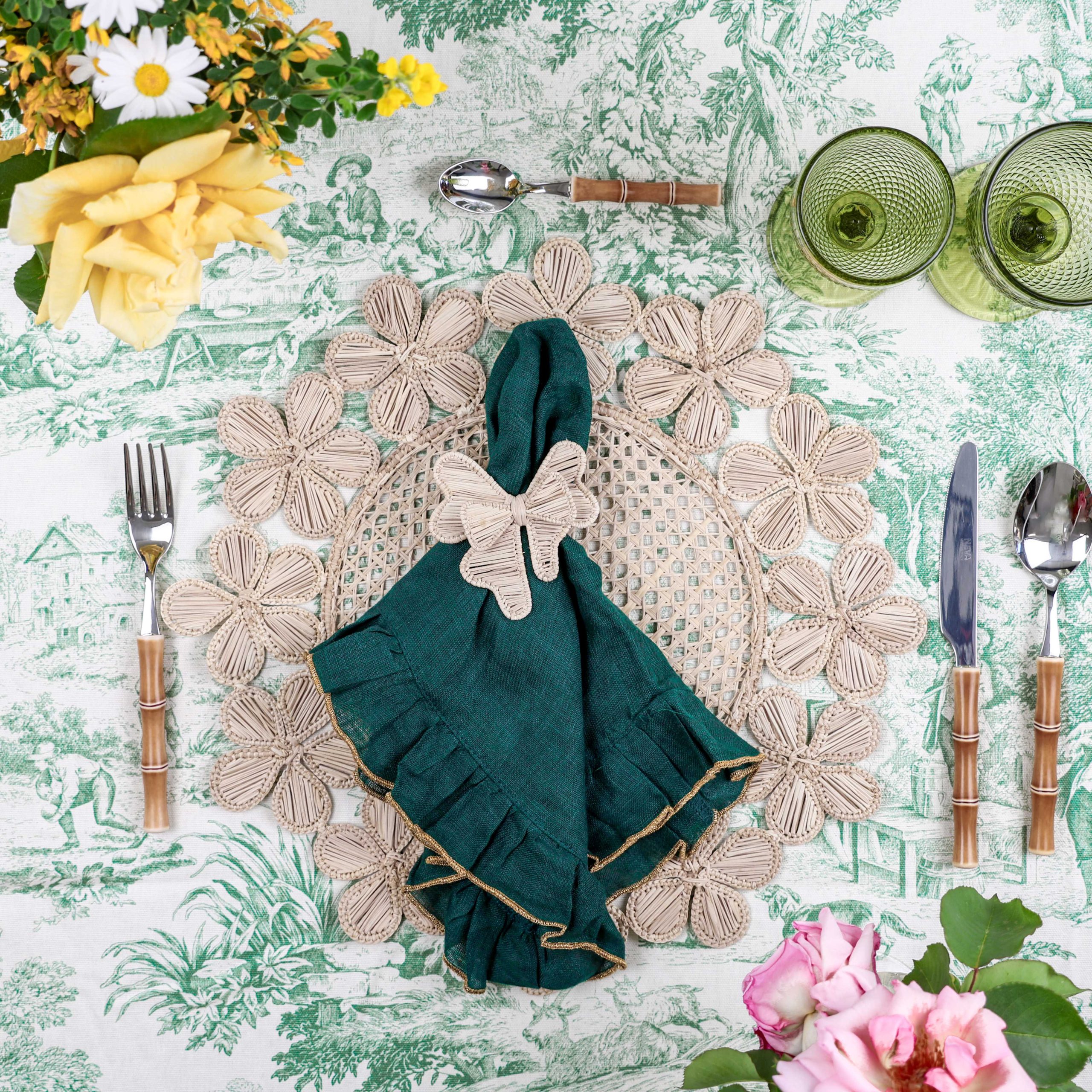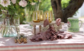 • Puedes combinarlo con nuestro mantel de volantes bordado a mano blancoy nuestras servilletas de lino con volantes azules para tener una mesa especial y única.