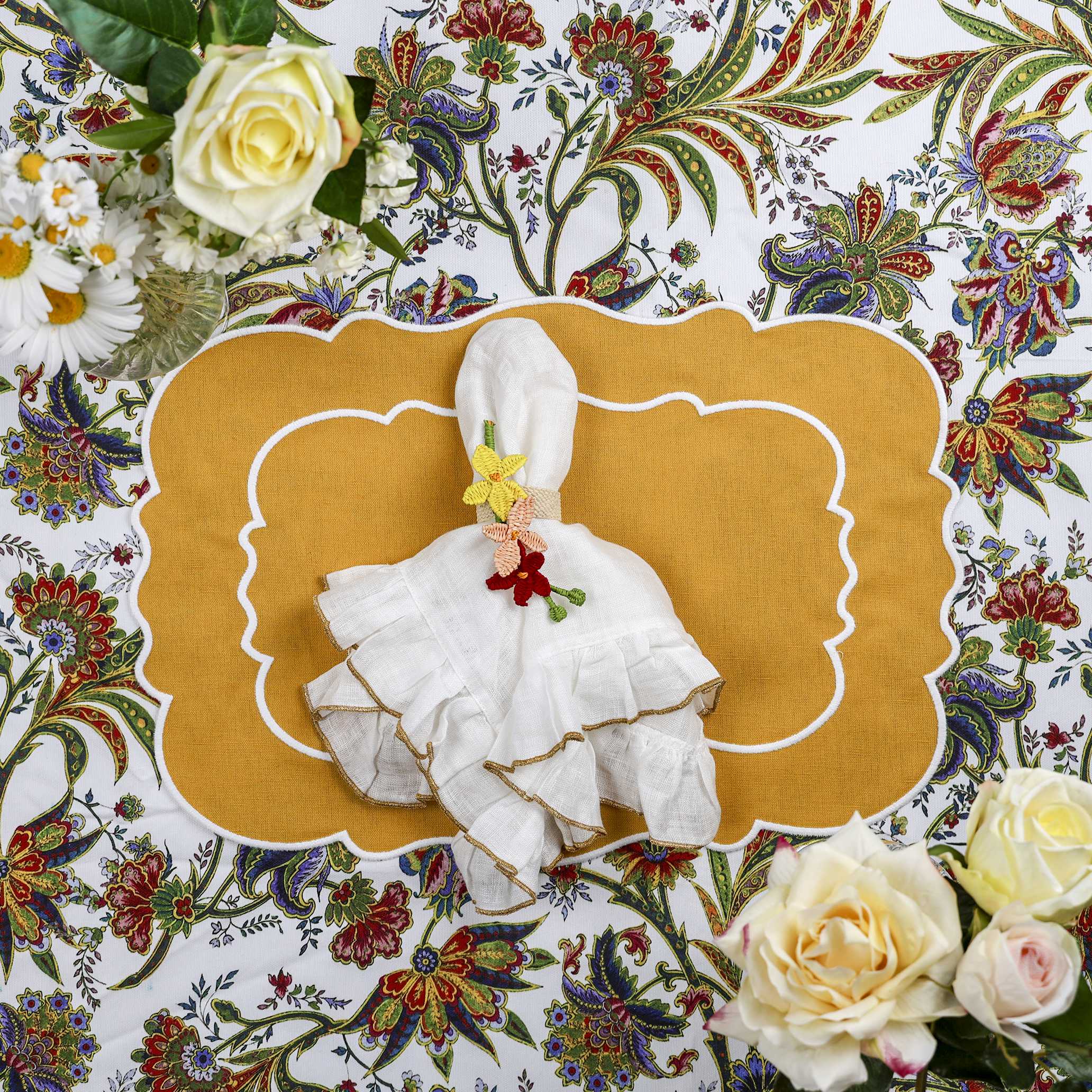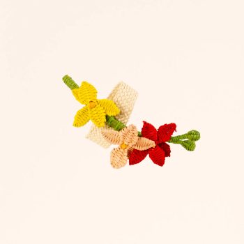 Nuestra colección Blossom de fibras naturales presenta este servilletero con tres flores tejido a mano con palma de iraca por artesanas utilizando una técnica tradicional.