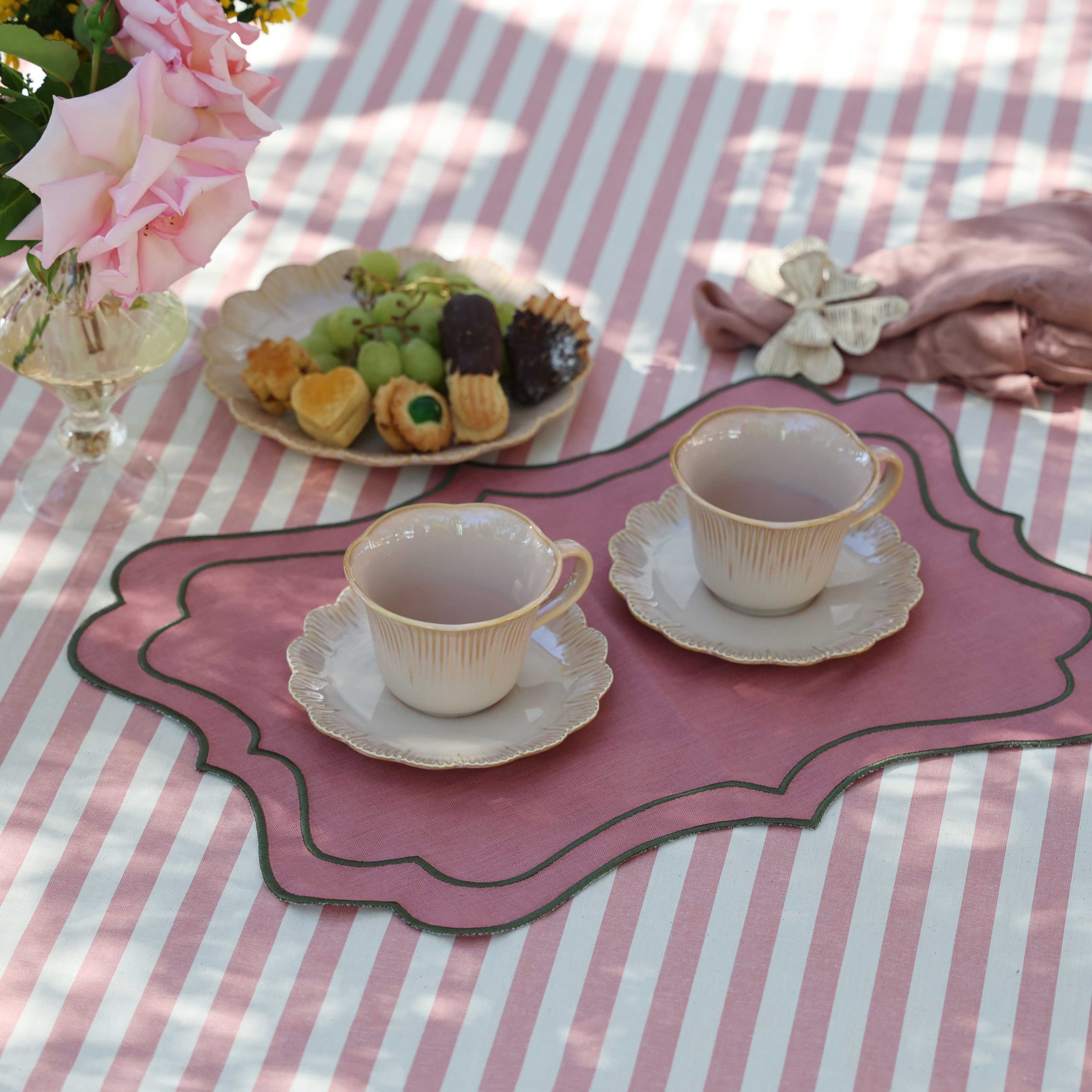 Preciosa taza de café y platito de porcelana fina de alta calidad con elegantes relieves en forma de pétalos de flor. El complemento perfecto para tus mesas y desayunos.