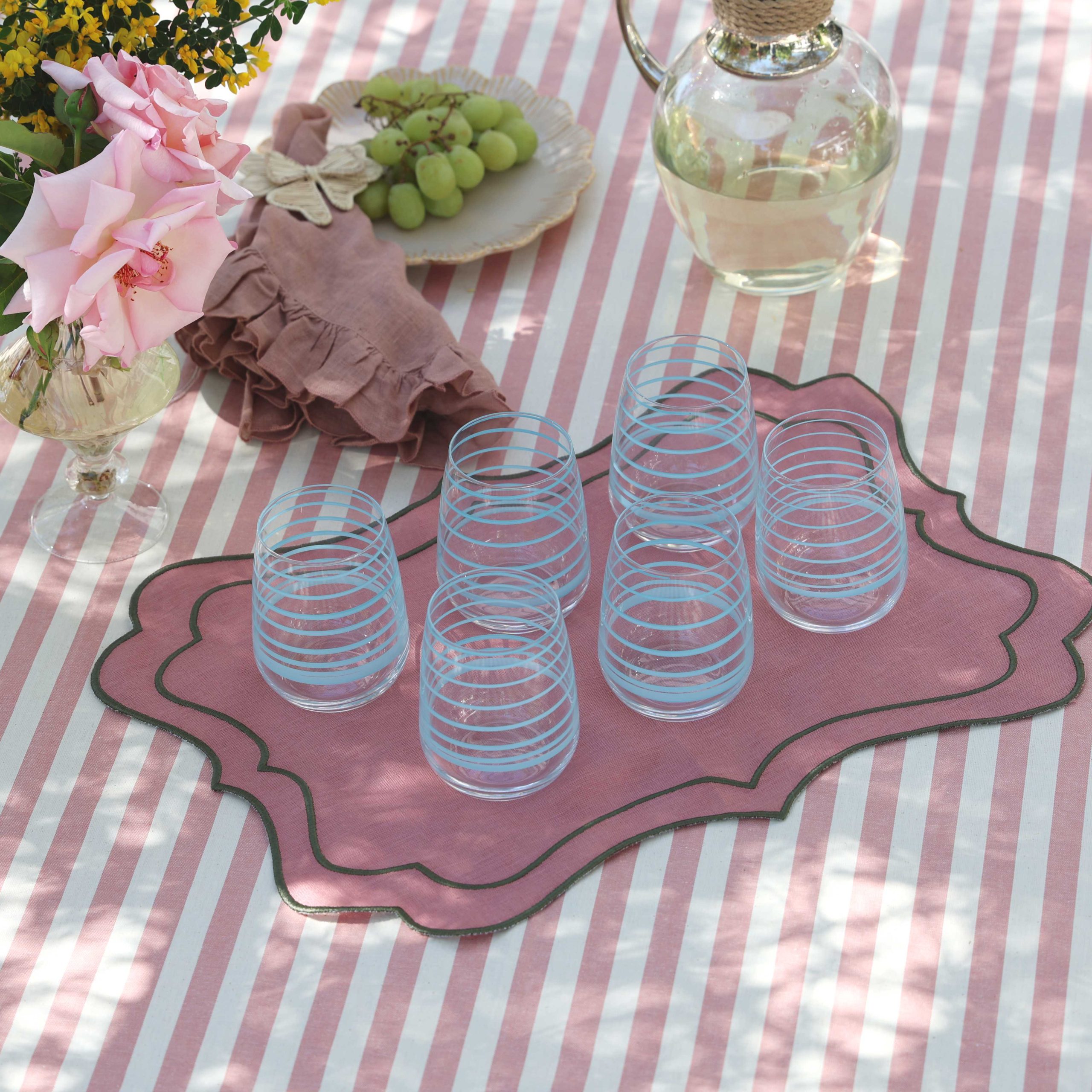 Estos preciosos vasos con sus alegres remolinos azules son el toque de color perfecto para tus mesas. Son ideales para agua o para tus cócteles.